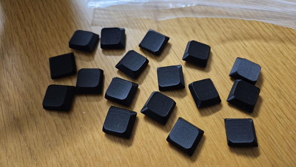 上記キーキャップを購入してもよかったのですが、「最近3Dプリンターを購入したこと」、「MeKaBuのキーキャップはGitHubで公開されている狭ピッチ用キーキャップのデータを利用して製造されていると教えてもらったこと」により、自分で印刷して作ってみることにしました。